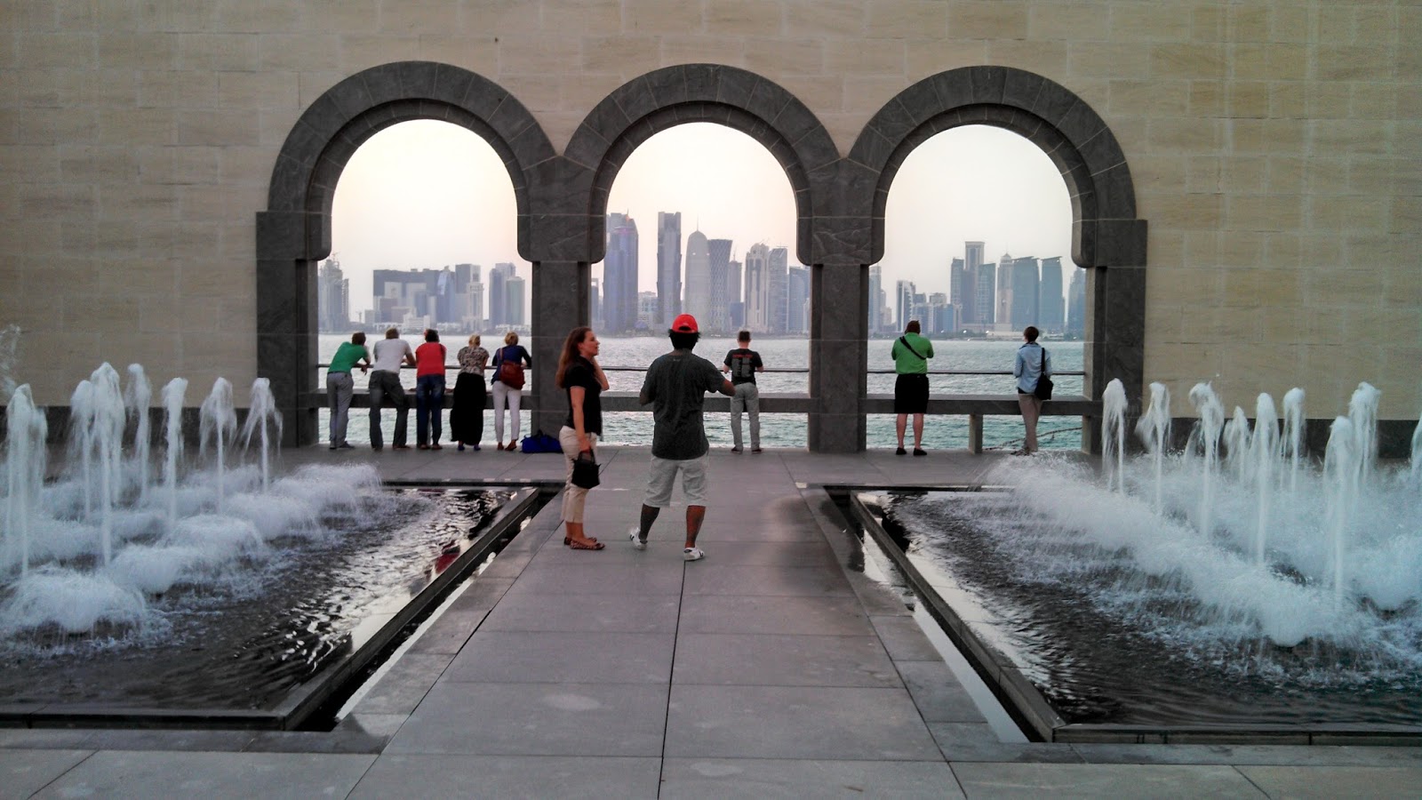 For a little more variety, here’s the tourist crowd at the Museum of Islamic Art (extraordinary place–a separate post at some point) waiting for sunset and the buildings to light up: