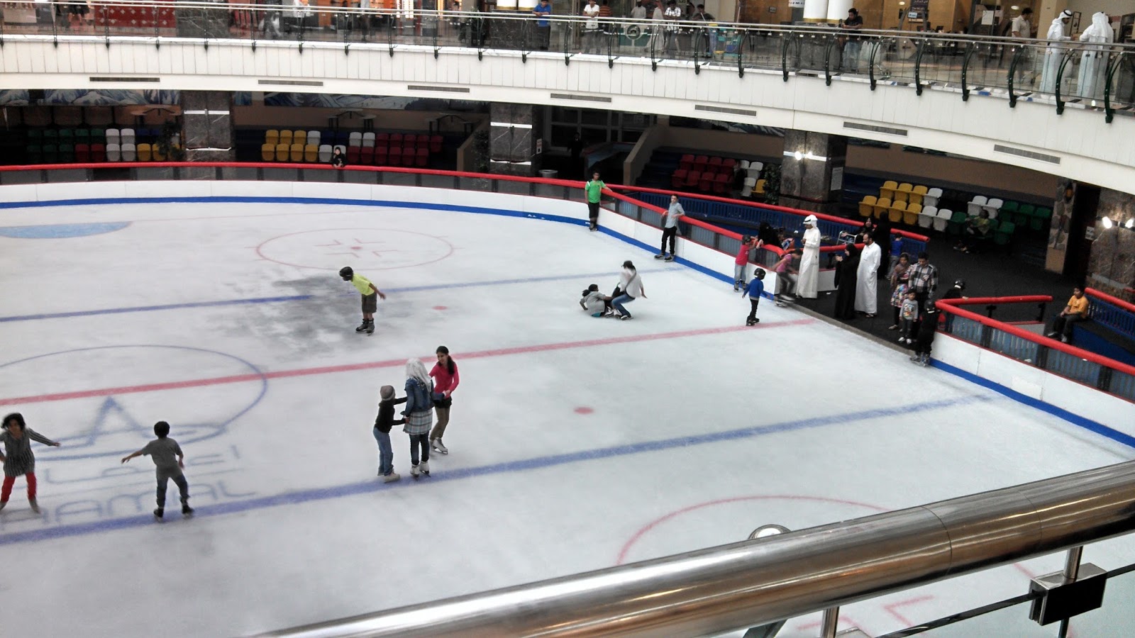 My introduction to life in the Middle East was a reunion vacation in laissez-faire Doha, Qatar. Men and women move about freely, traffic is orderly, and dress is expected to be modest but you see about everything. For a taste of the range, here’s a man in a thobe beside an ice rink at the mall, and the Arabic children in their various outfits doing all the skating.