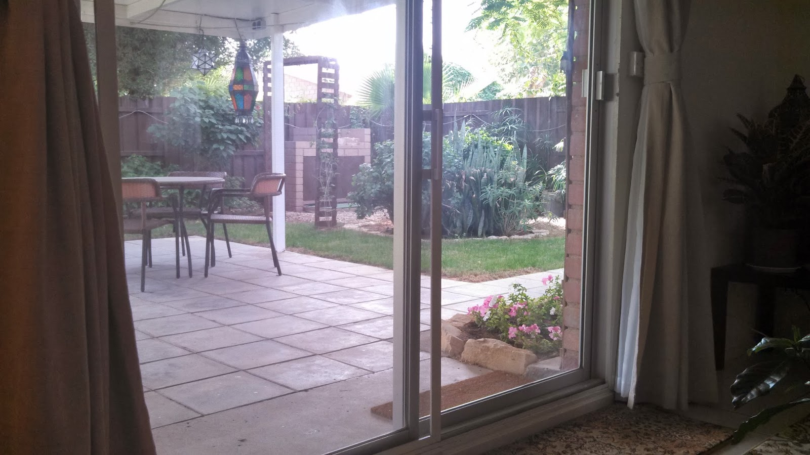 You have to keep staring into the fire to get the full effect, though, because just to the left, this is the view out the patio door: