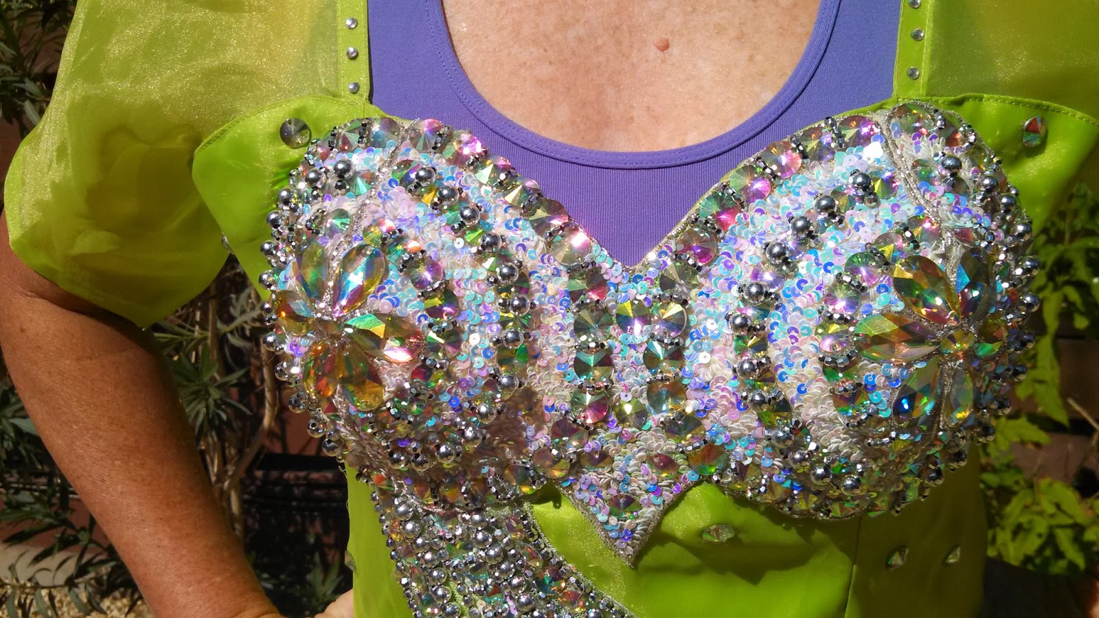The starting point for something like this is back in the fabric shops: pre-made jeweled bodice fronts. For beginners, start simple.