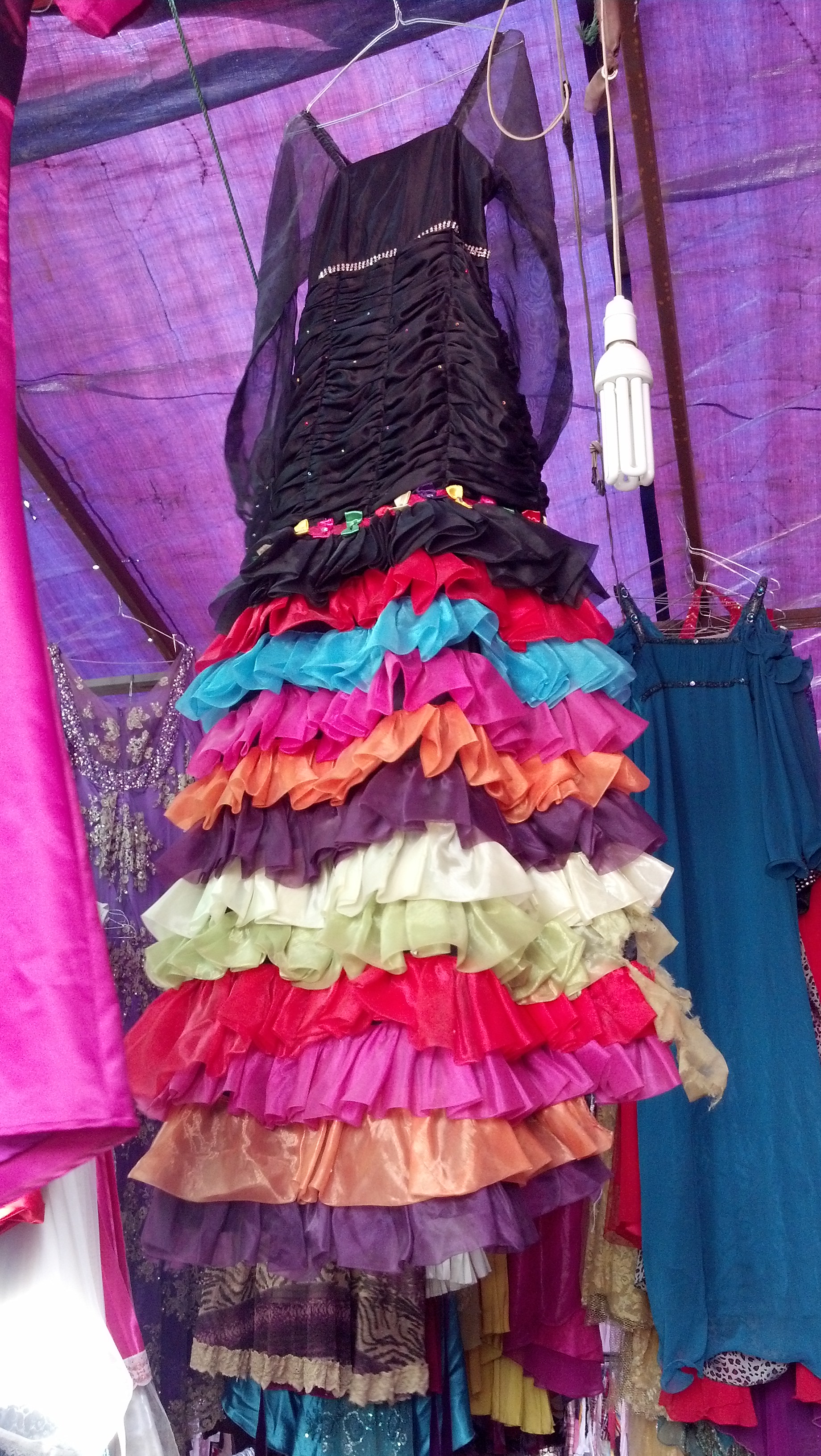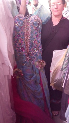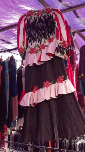 My, how things change. The date I keep circled on my compound bus calendar every month is for the trip to the second-hand souk. The blog from my first trip, which explains more thoroughly what it’s all about, is here. (Short version: it’s basically a sprawling, filthy, poorly lit, overcrowded, third-world tent-city Goodwill store. Got the picture? Now bedazzle it–rhinestones, feathers, tassels, glitter, gilt… There you go. Perfect.) I’ve been back a few times since the first, and I’m itching to share my favorite finds.