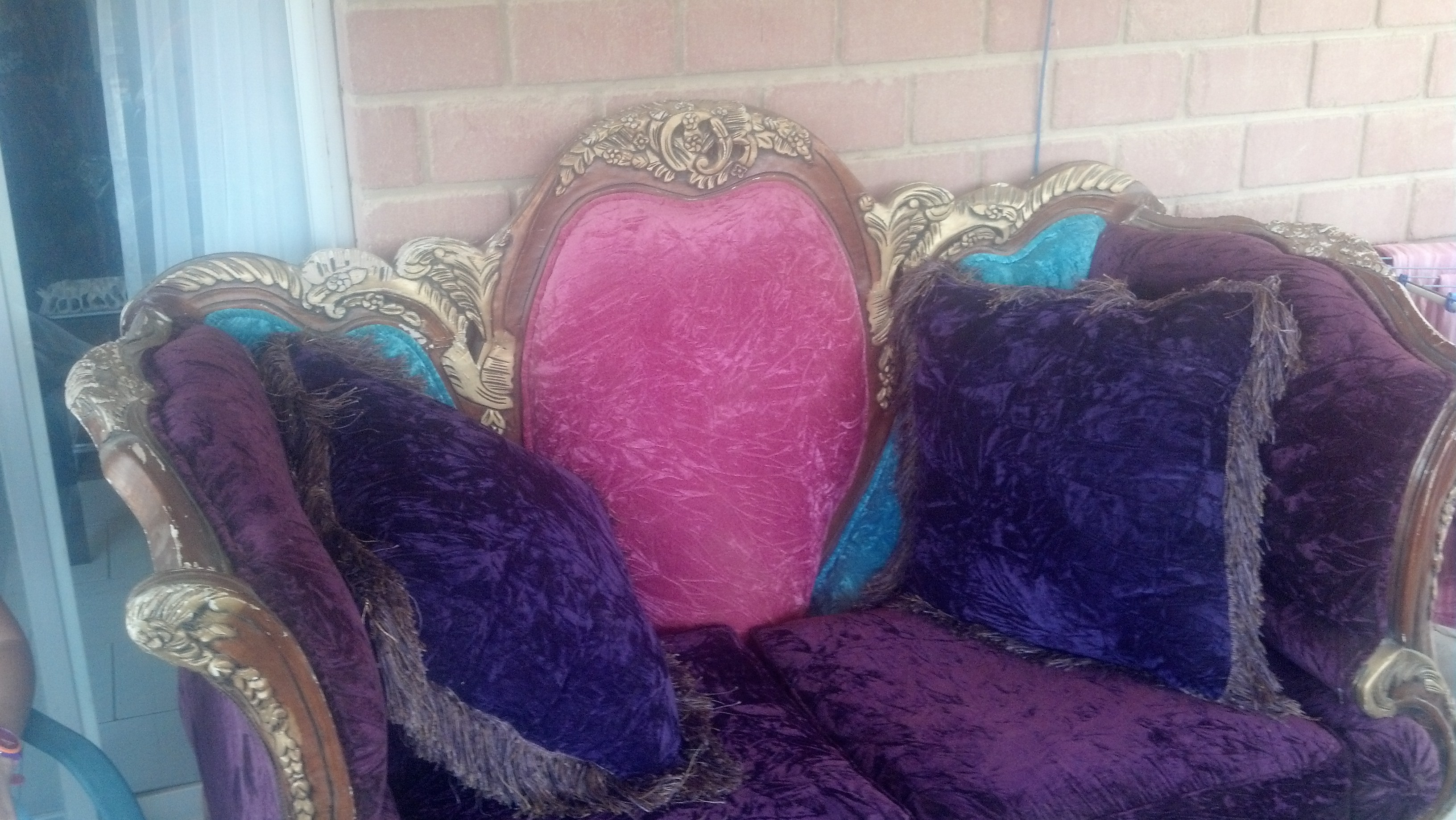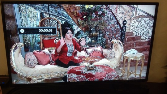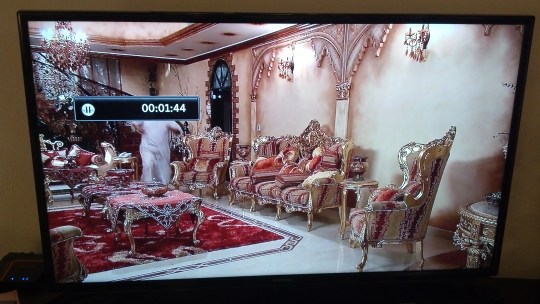 A fairly standard grouping is two full-length three-seater sofas, a loveseat, and a chair. You’ll see it described as a “9-seat sofa,” which puzzled me on expat forums until I started looking and counting. For custom collections, just start adding extra pieces. Having trouble picturing it in use? Try these snaps I took of my TV advertising an Arab family sitcom: