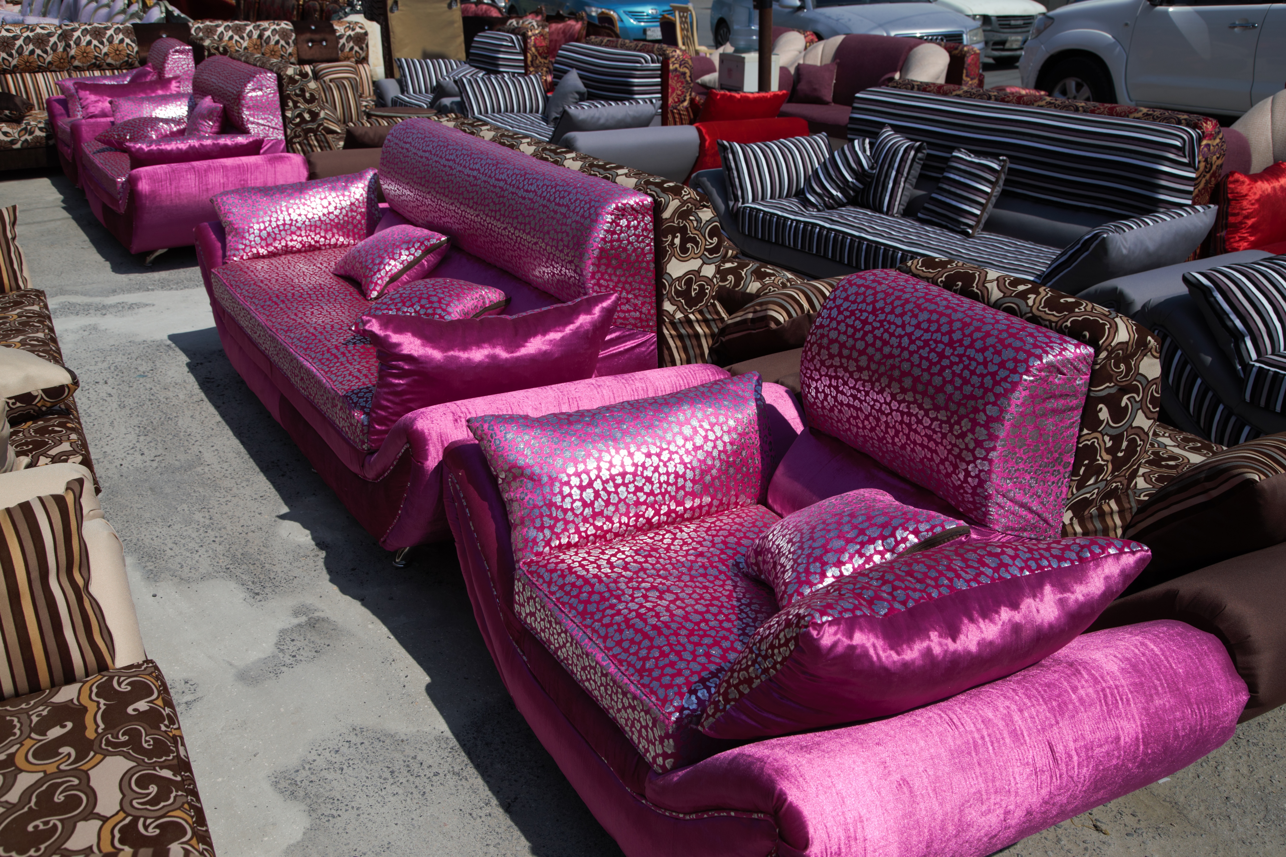 These rectangular furniture groups line up along the roadside, one after another, in every color and pattern and combination of both you can imagine. And some you can’t. Then there are the unattached groups, which give you more freedom of room arrangement: