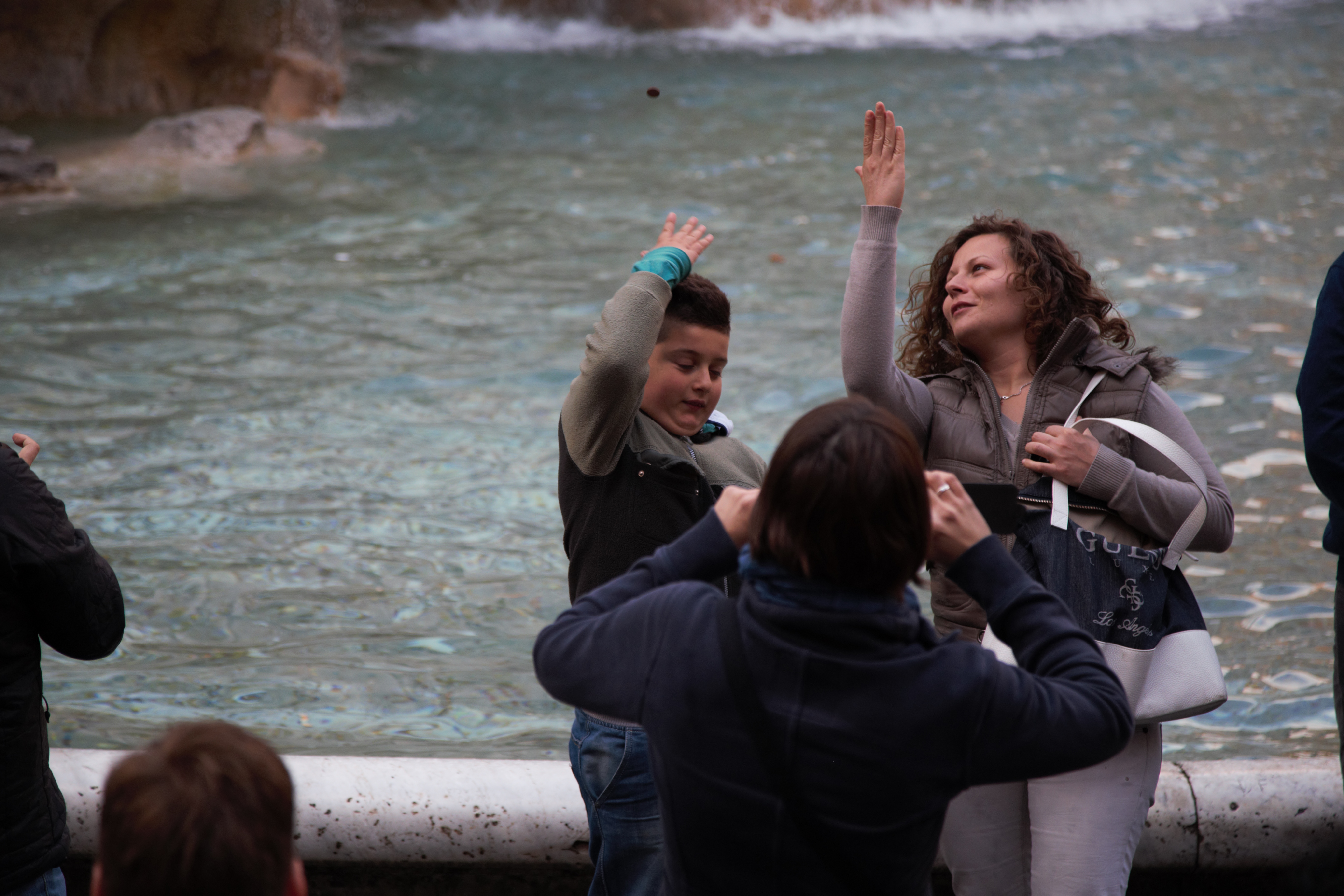 But I saw something striking this past week. Or perhaps I should say something ordinary that struck me now because I live in Saudi Arabia. We were traveling in Italy, dining like kings (because all you have to do in Rome is walk up to a shop window and point to get something delicious), exploring (because around every corner in Rome is something surprising), and at the end of a long day of walking, settled down for a rest beside the Trevi Fountain near our apartment. You know, the one from Three Coins in the Fountain where, according to the movie, you’re supposed to throw a coin in to ensure that you’ll be back.