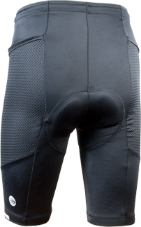 All necessary body parts are covered, by I still find them inappropriate for out-and-about use. My personal rule is that in public, bike shorts need to have a line-of-sight relationship to an actual bicycle or to cycling equipment. Therefore, I give myself unlimited right to roam inside a bike shop or perhaps at a convenience store where I’m buying a snack during a ride (food while riding = cycling equipment). I can stop and eat at an outdoor table with the bikes parked nearby, but not inside a restaurant. And I won’t ride the bike home, jump in the car, and go on errands. If I’m in that much of a hurry, I pull a skirt on over the shorts.