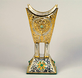 incense burner from the Nixon LibraryIn general. That’s a fancy-pants presidential gift in the Nixon library, but the shape and style are pretty common. They come in all sizes, from little tabletop ones to freestanding models that reach your ribs. The burned oud gives off a sweet-smelling smoke that men use to scent their clothes and beards so that it just sort of floats around them, or that  scents the room. Sometimes overwhelmingly, to Western tastes, but I do like it.