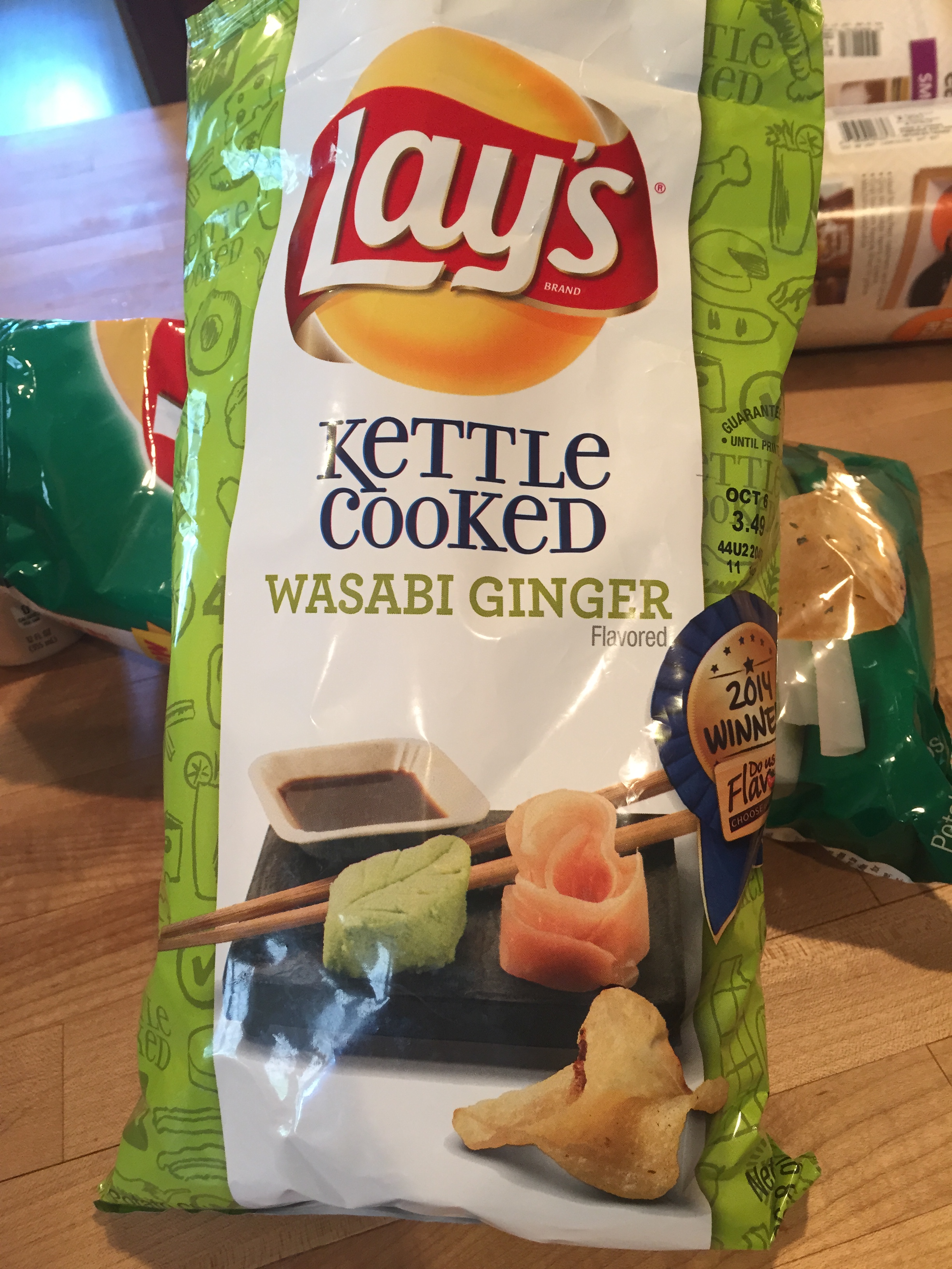 Lay’s Wasabi Ginger potato chips. Better living through chemistry, people. Please help me keep these on the shelf.