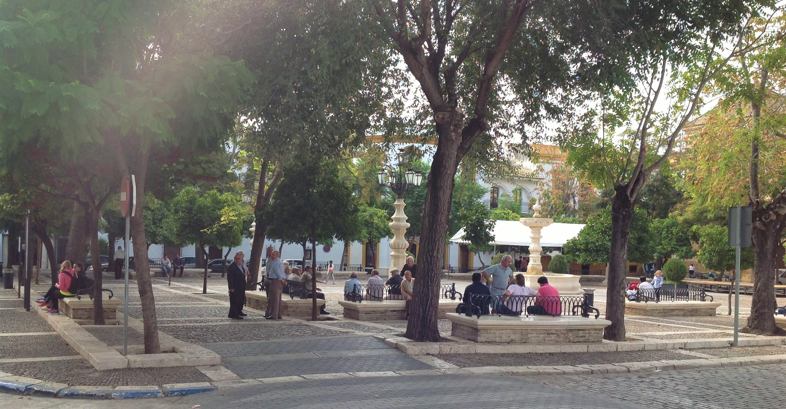 Well, that’s not exactly…okay, true. Outside of very few big cities, Americans get in their cars, drive to work, work, drive home, then close the garage doors behind themselves and go inside. Public transportation, again, is used by large segment of the population in only a few large cities. Between the advent of air conditioning and television, people don’t even sit outside in the evenings. We go out for errands or for dinner or entertainment, but the majority of us don’t just hang around outside our homes. In my suburban neighborhood, if you see somebody over the age of 12 walking without exercise clothing, pool toys, or a dog, it’s weird. (Exception: people in business dress during commuter hours, walking to or from the bus.) There’s a park, but people go there to use it to throw a ball or a Frisbee for a little while and then they leave. Here it is, on a summer Sunday afternoon: