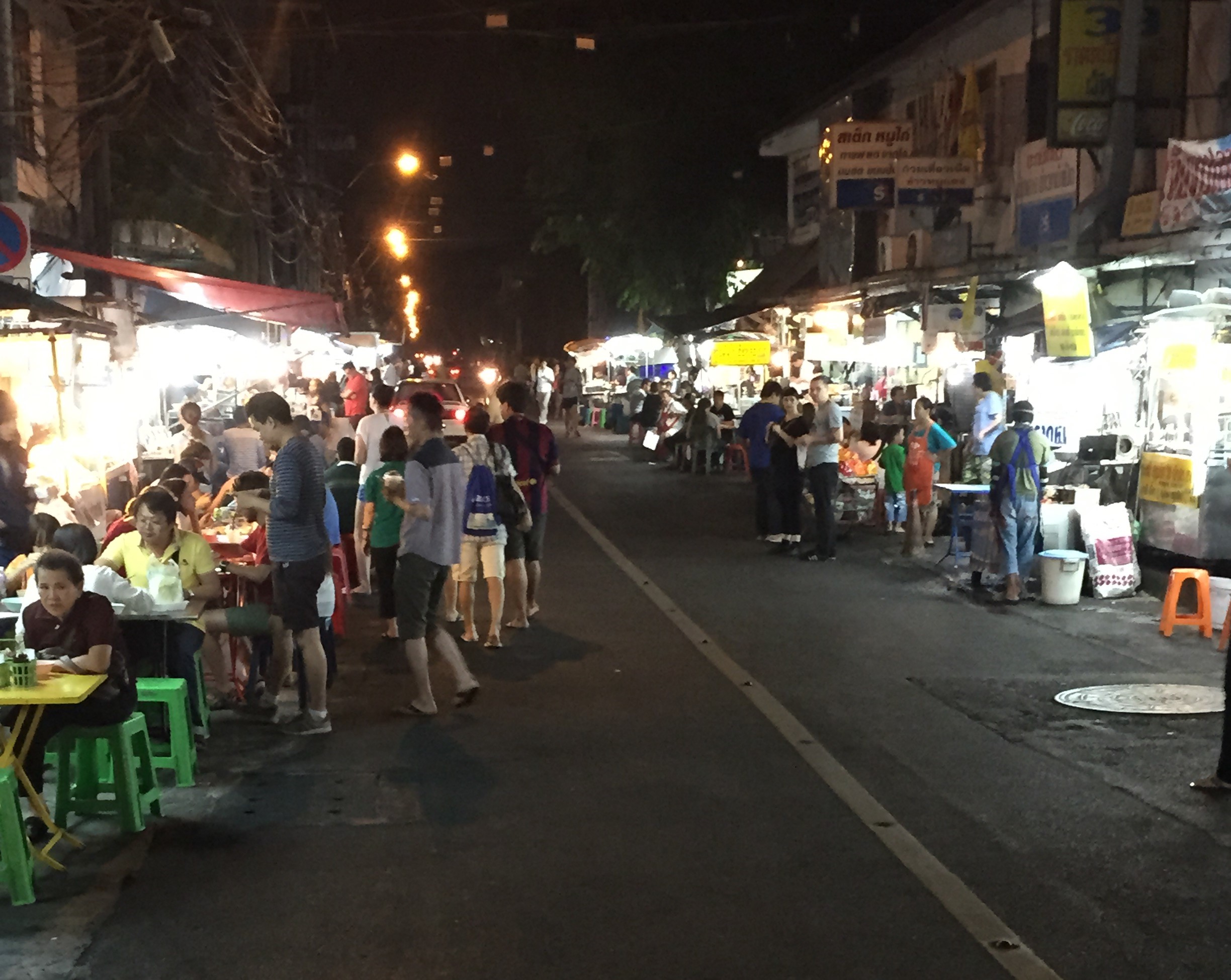 In Thailand, people shop for their meals outside, every day, often every meal, from street vendors. Rather than stay in your house staring into a half-filled refrigerator, you go out among your neighbors multiple times a day to buy individual portions of, say, broth, noodles, an egg, and some vegetables. (And be sure to pick up some mango sticky rice while you’re at it.)