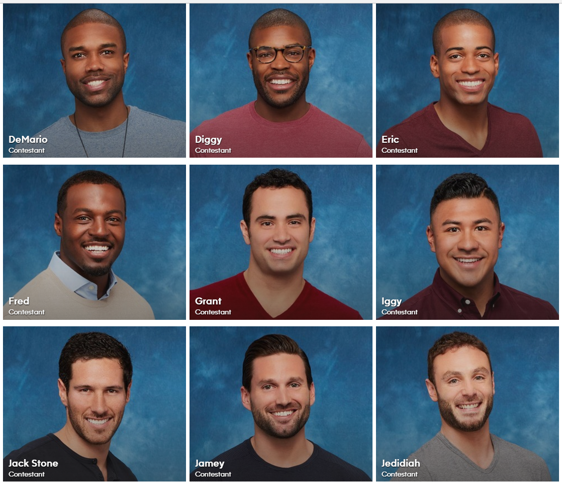 So, let’s do her a favor. And I’ll do you a favor, as well, in case you don’t have a chance to watch the show this week and meet the full panel. Thirty-one men introduced themselves tonight to Rachel, this season’s Bachelorette, and I’ll introduce them to you here. And to the baggage they’re proclaiming publicly in their bios. Ladies and gentlemen, your red flag roundup: