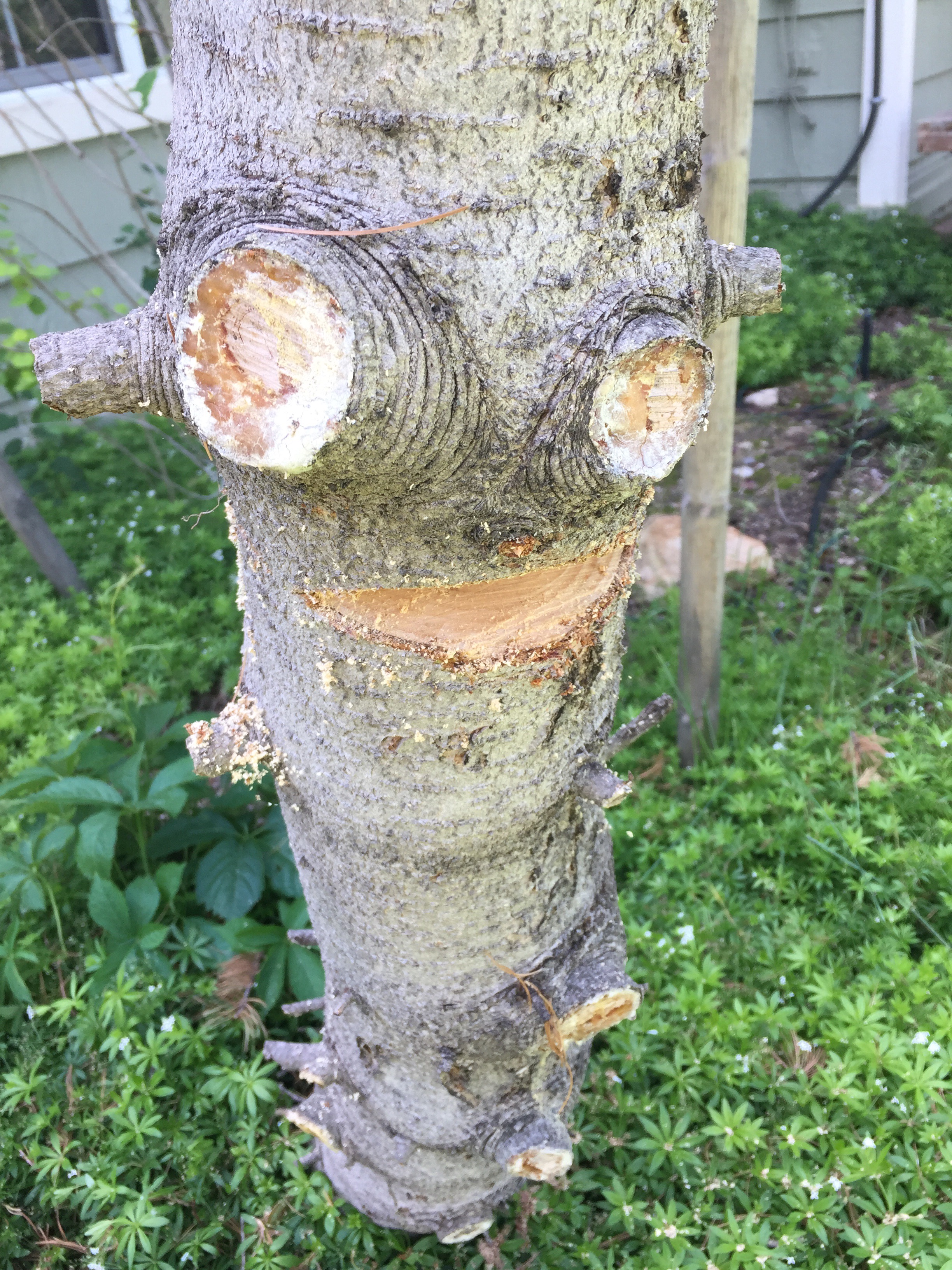(Any artists interested in creating a carving on that face that will delight or horrify the future owners when re-exposed in the fall are welcome to contact me.)